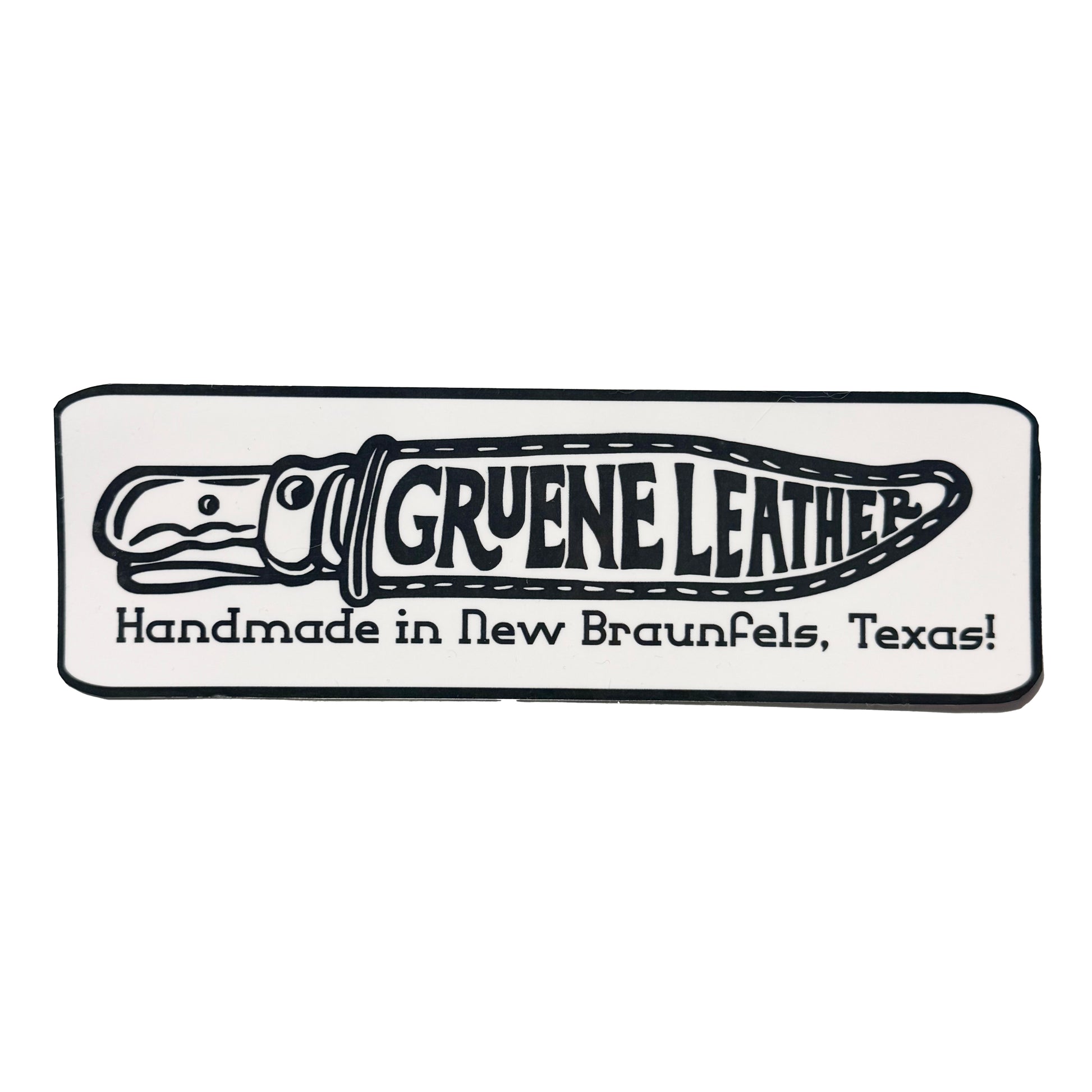 Display your passion for classic cutlery with this Original Gruene Leather Bowie Knife vinyl sticker. Featuring the iconic bowie knife design that defines our brand, this durable sticker adheres to laptops, water bottles, toolboxes, and gear. Weather-resistant and built to last, it's the perfect way to showcase your appreciation for quality craftsmanship and timeless blade design. Compact, versatile, and distinctly Gruene.