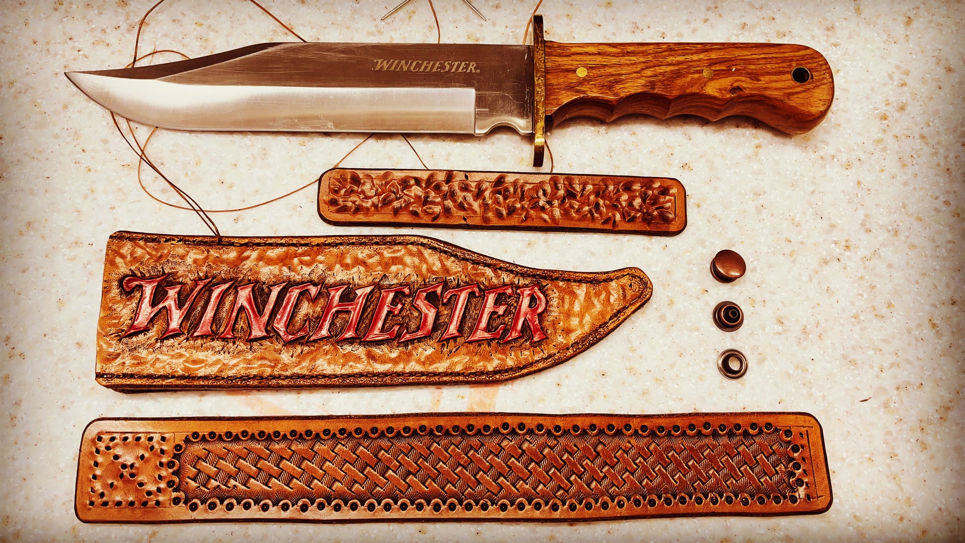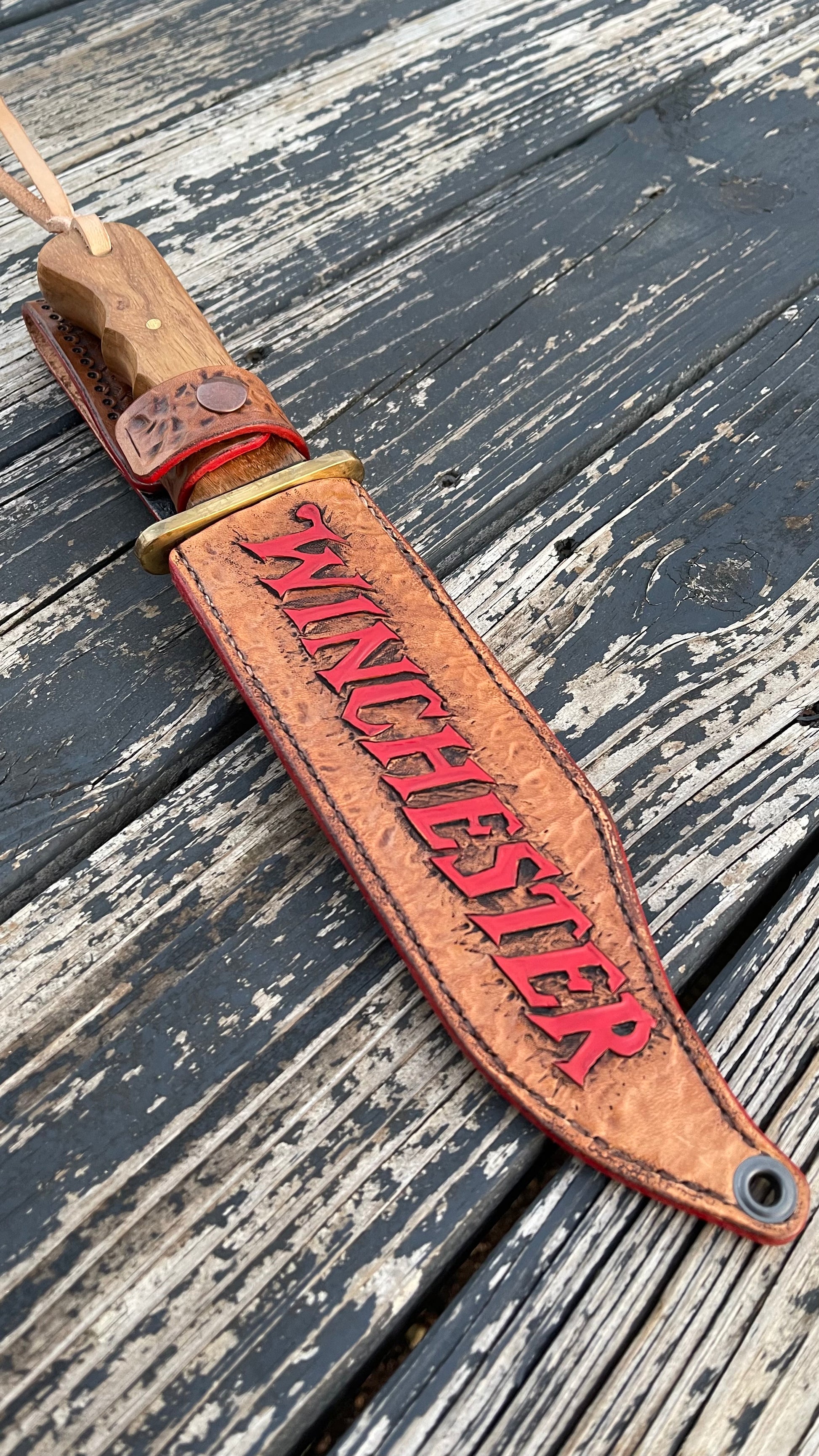 This listing includes BOTH the Winchester Bowie Knife and a fully handcrafted custom leather sheath — built together as a matched set.
